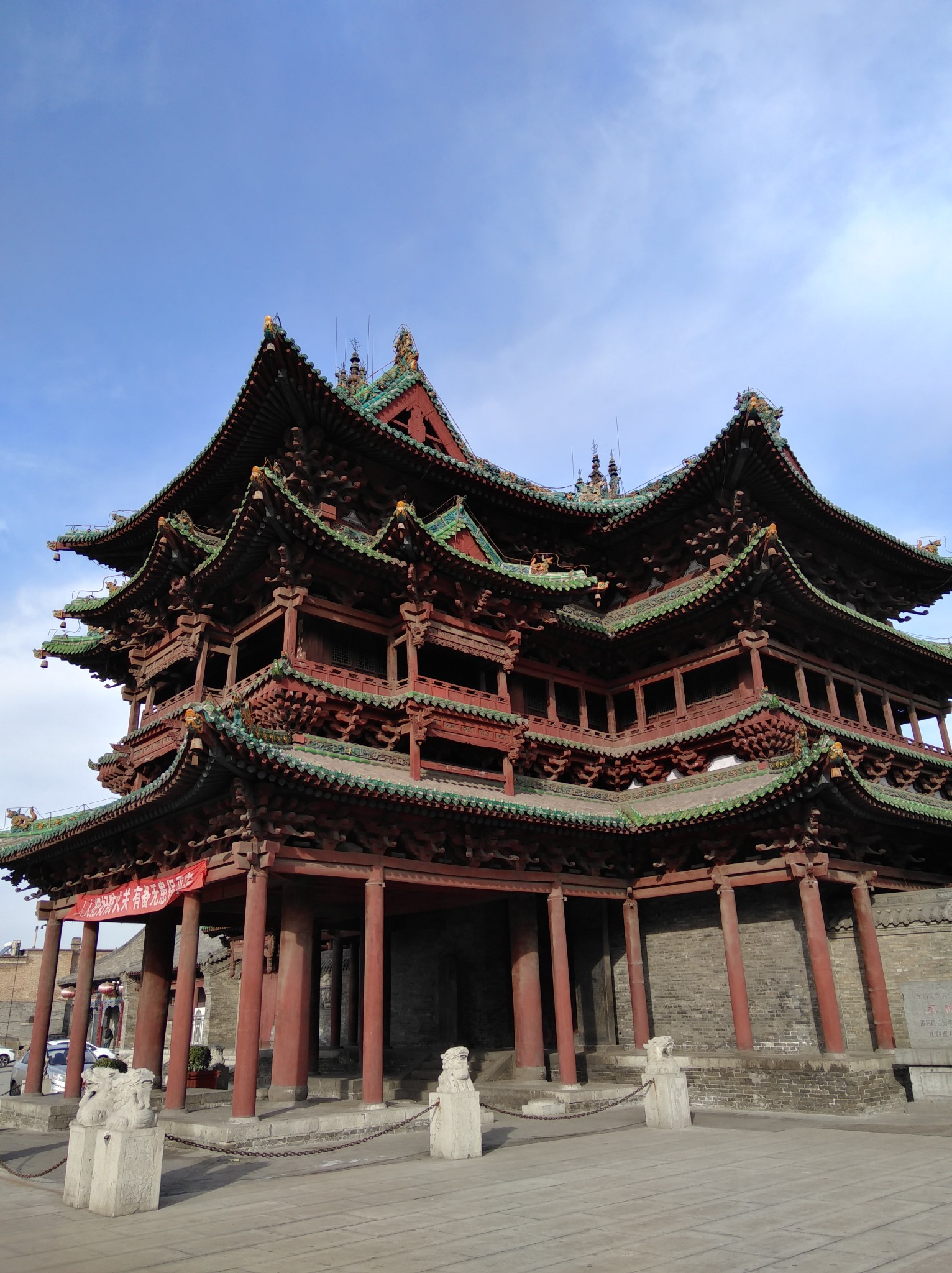 祆,xiān。当地人叫玄神楼。祆教即拜火教。 山西 四 大名 楼( 万荣 的秋风楼、 万荣 的飞云楼、 永济 的鹳雀楼和 介休 的袄神楼)之一,后面我们还会去飞云楼、鹳雀楼。